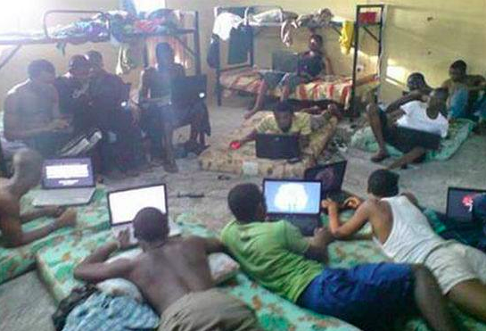 นี่เป็นภาพของกลุ่มมิจฉาชีพที่เรียกว่า “สแคมเมอร์ (Scammer) หรือพวกหลอกลวงทางอินเทอร์เน็ต” ที่ซ่องสุมกันอยู่ในห้องโกโรโกโส ในมือง Lagos ประเทศไนจีเรีย โดยมุกแบบที่พวกเราอาจเคยได้ยินมาก็คือ การอ้างว่าส่งของแพงๆ มาให้เรา แต่ของไม่ผ่านด่านศุลากร โดยจะมีคนไทยที่ร่วมขบวนการโทรมา อ้างว่าเป็นเจ้าหน้าที่ให้เราโอนเงินไปให้